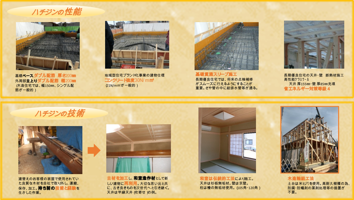 右の写真はハチジンの基本的な新築設計の基礎配筋です。