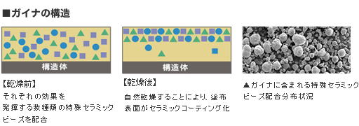 特化した種類のセラミックを中心に,アクリルシリコン樹脂とハイブリッドさせて塗料化しています。
